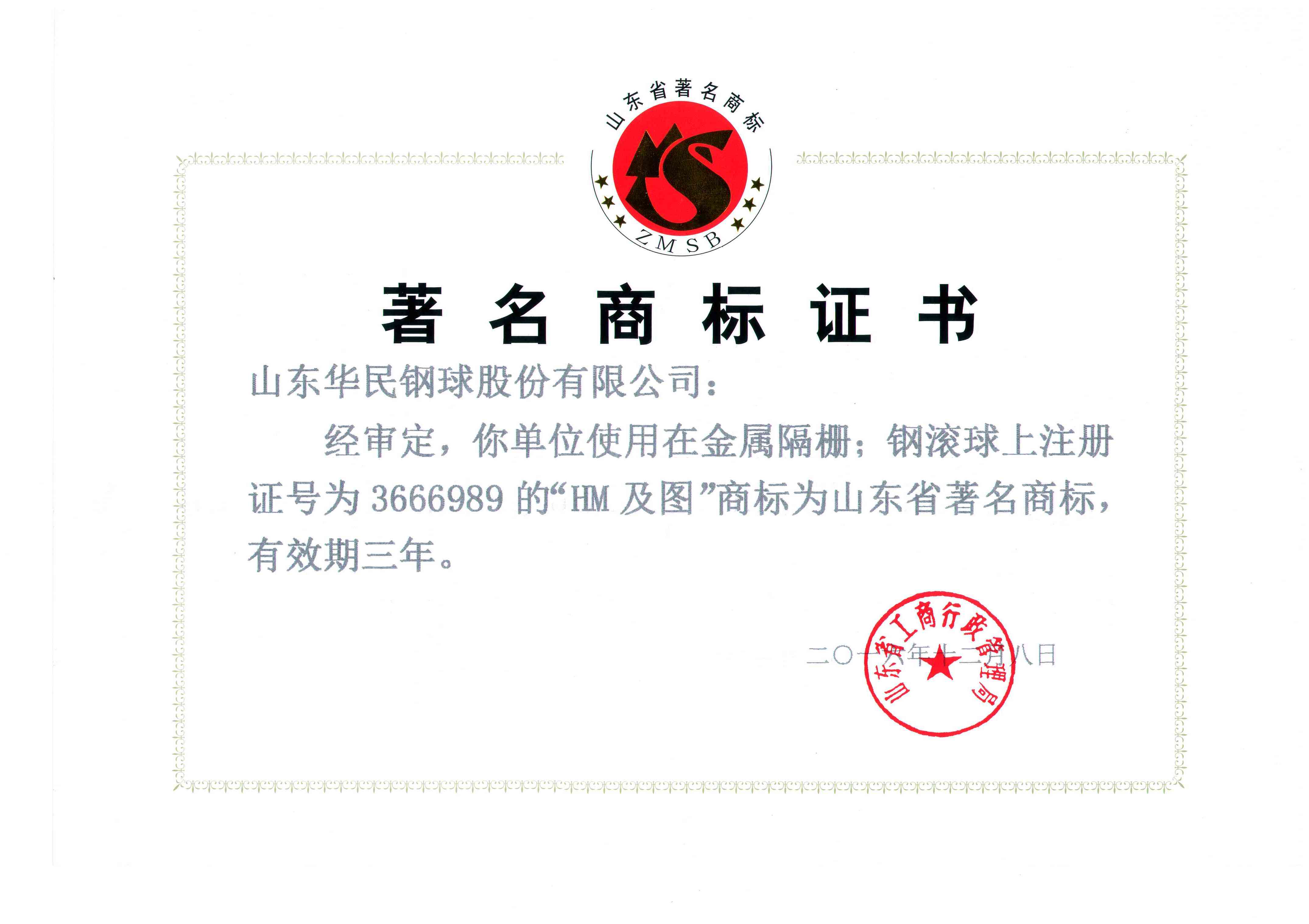 • 著名商標(biāo)證書(shū)