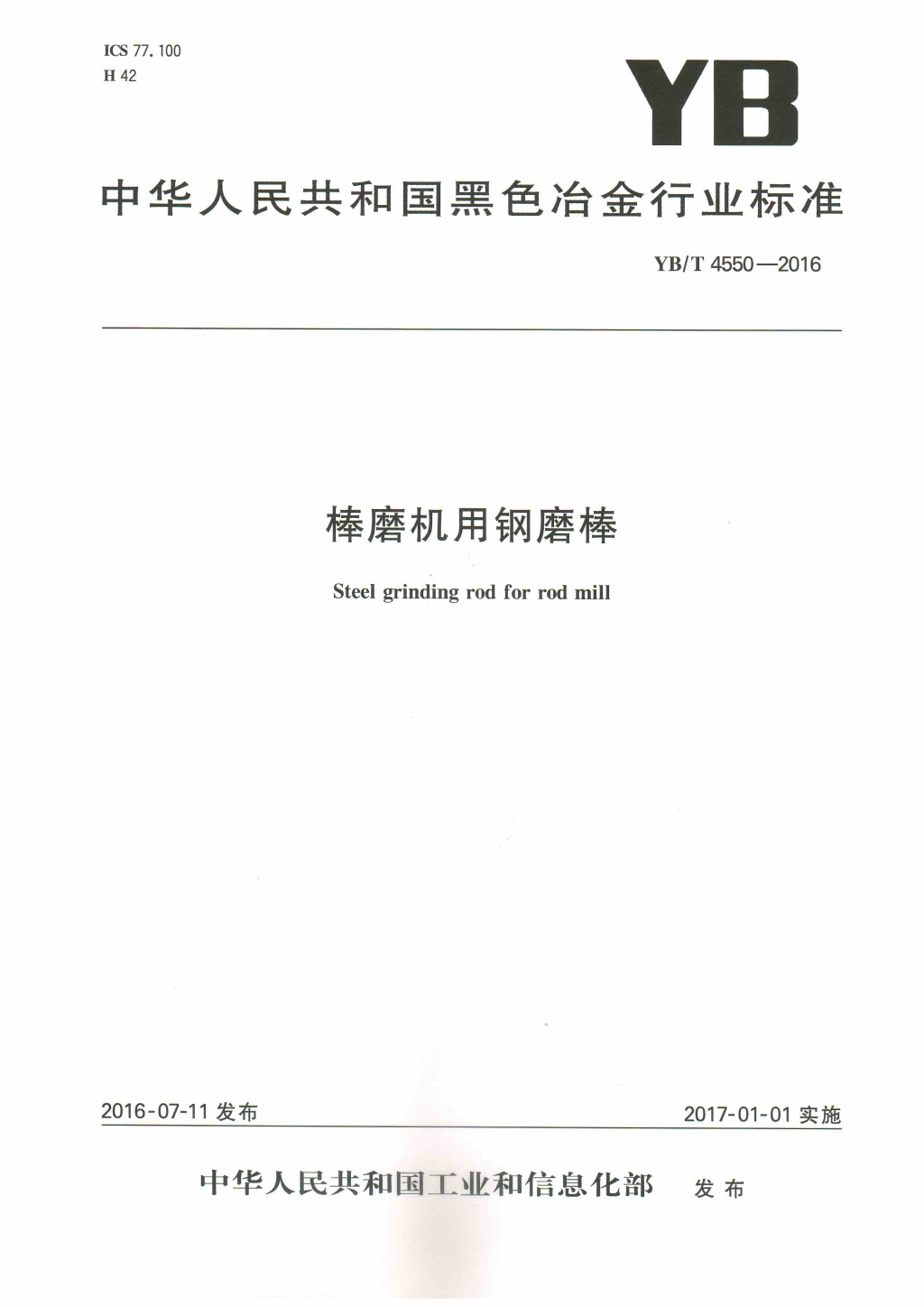 • 棒磨機(jī)用鋼磨棒YB/T 4550-2016
