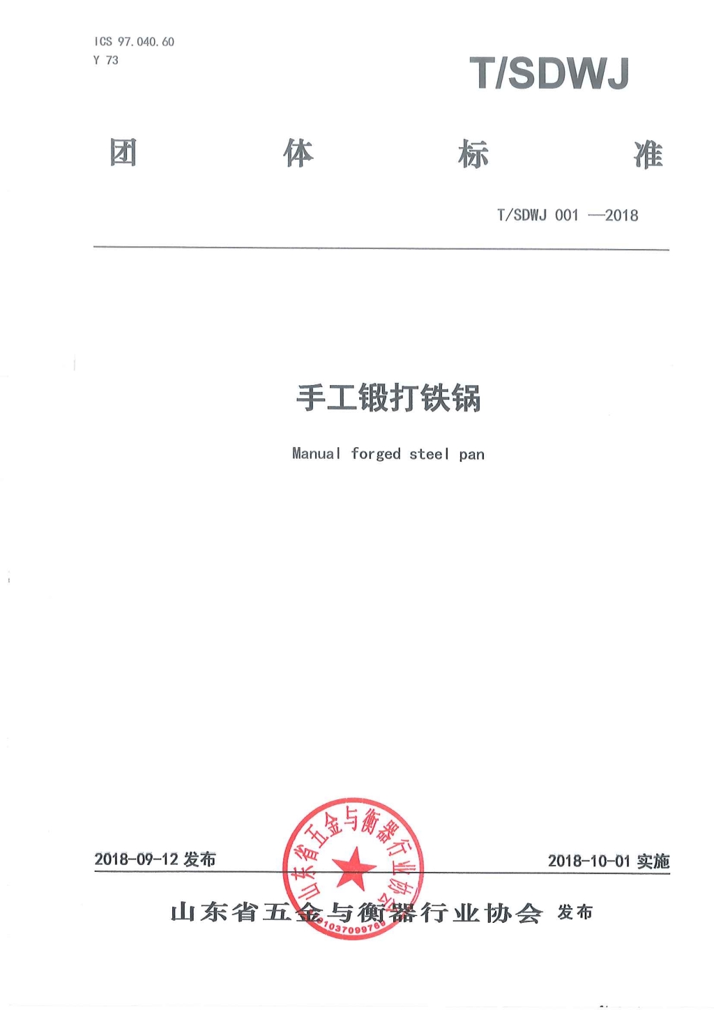 • 手工鐵鍋團(tuán)體標(biāo)準(zhǔn)T/SDWJ  001-2018
