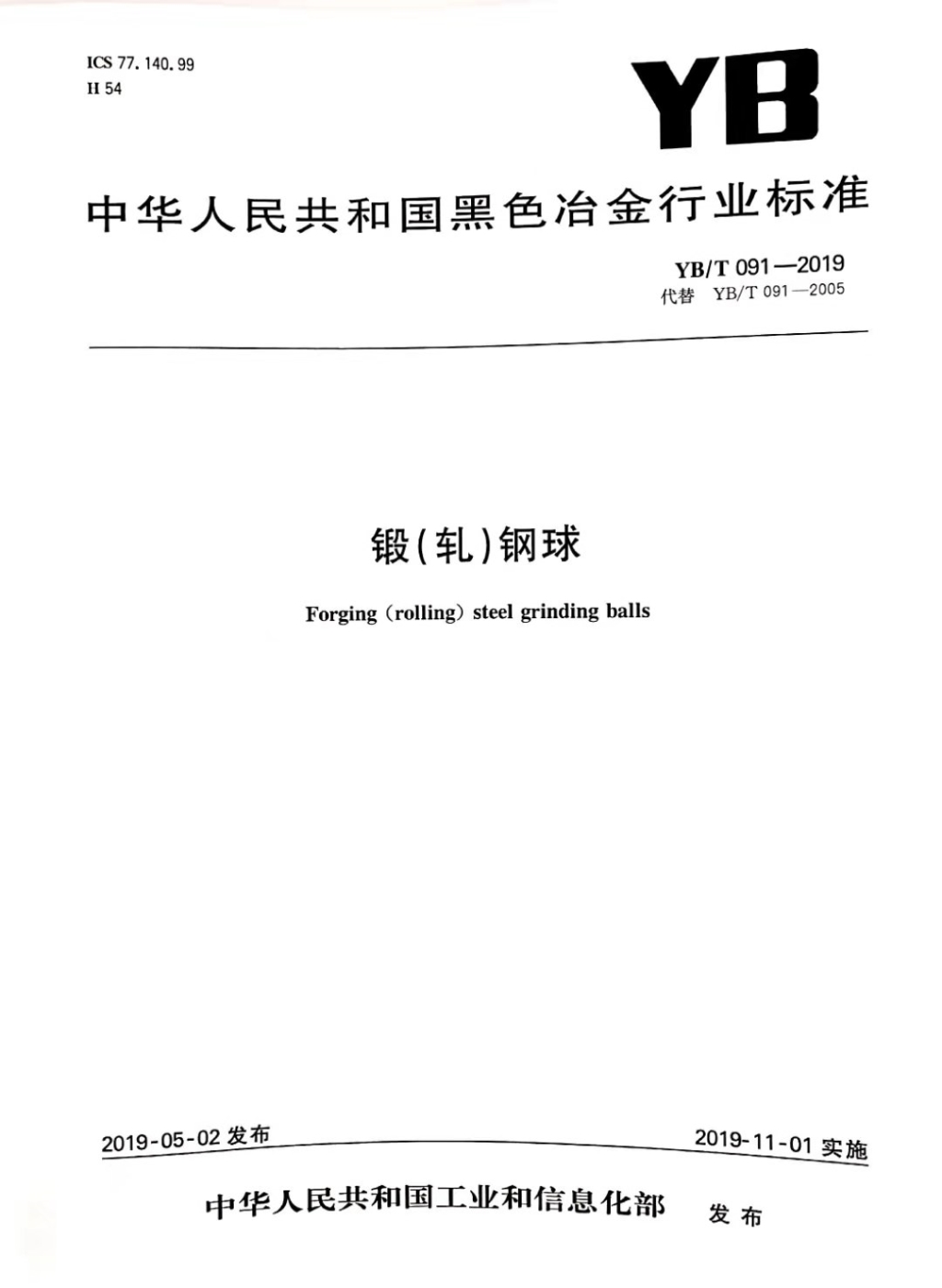 鍛軋鋼球YB/T 091-2019